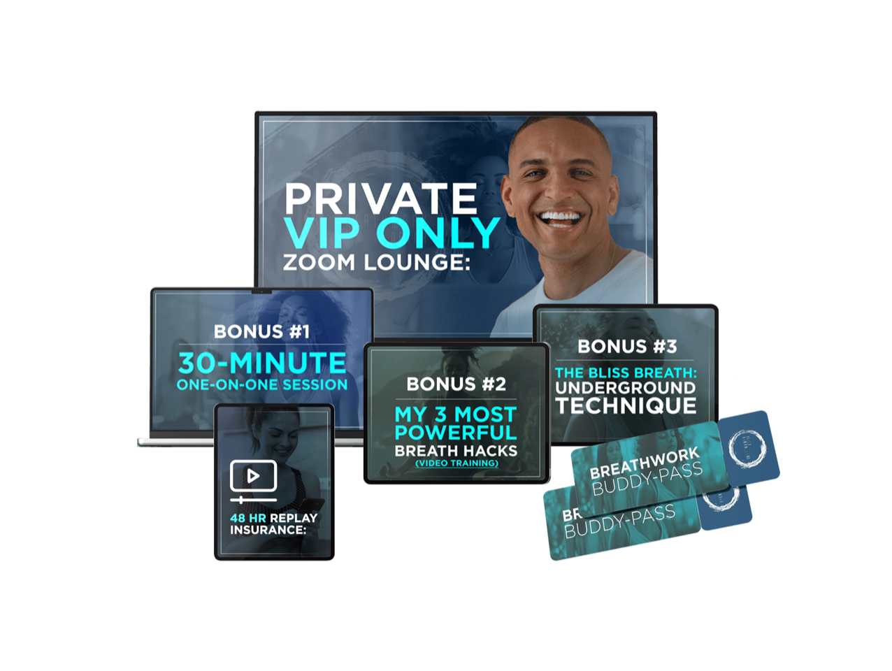 • FREE! 30-MINUTE ONE-ON-ONE SESSION: 30-minute call with your own personal Breath coach to help you in life ($297 Value)