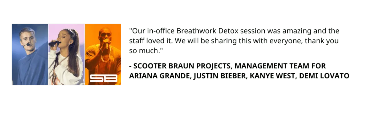 "Our in-office Breathwork Detox session was amazing and the staff loved it. We will be sharing this with everyone, thank you so much."